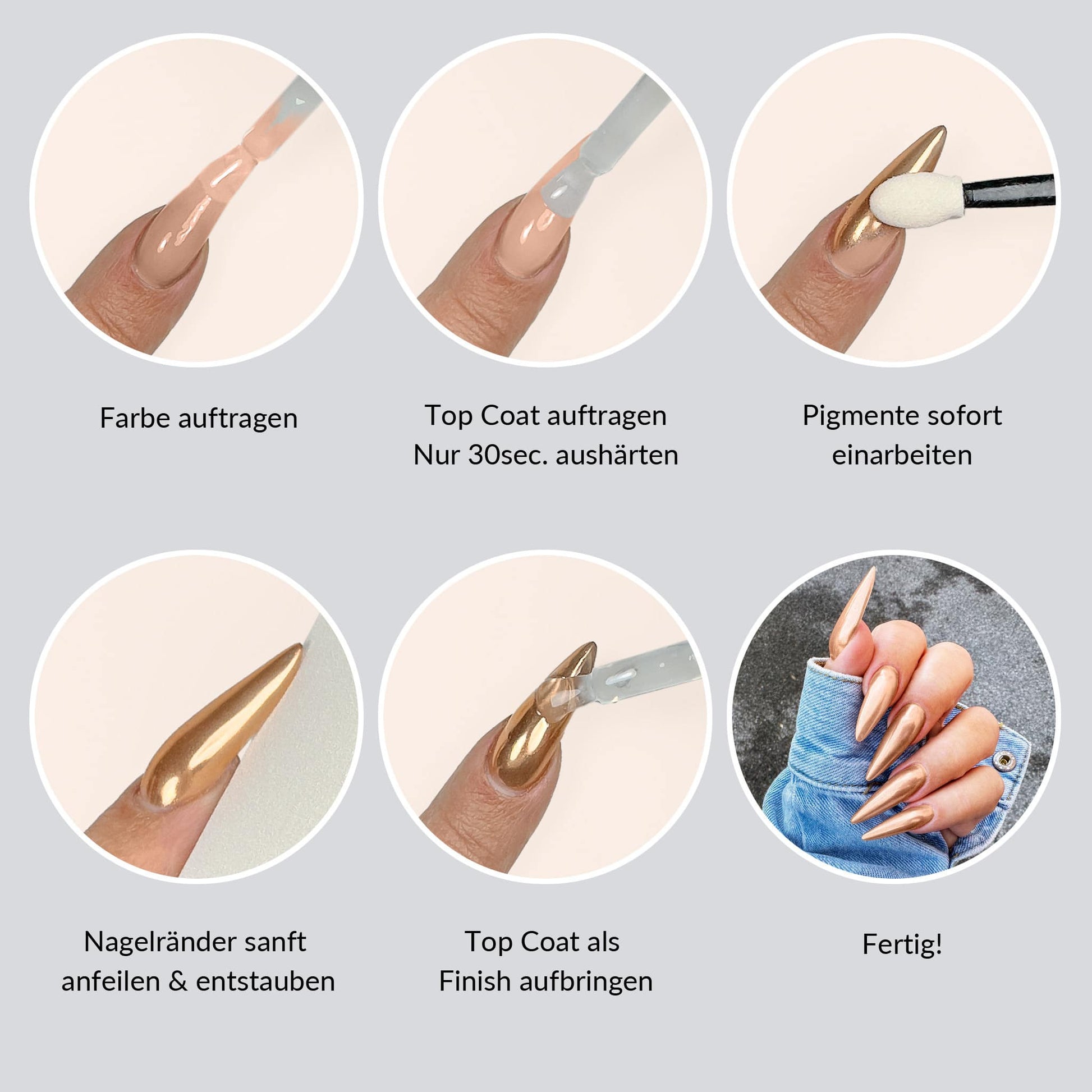 - 6 glamouröse Farben: Verleihe deinen Nägeln strahlende, luxuriöse Akzente.