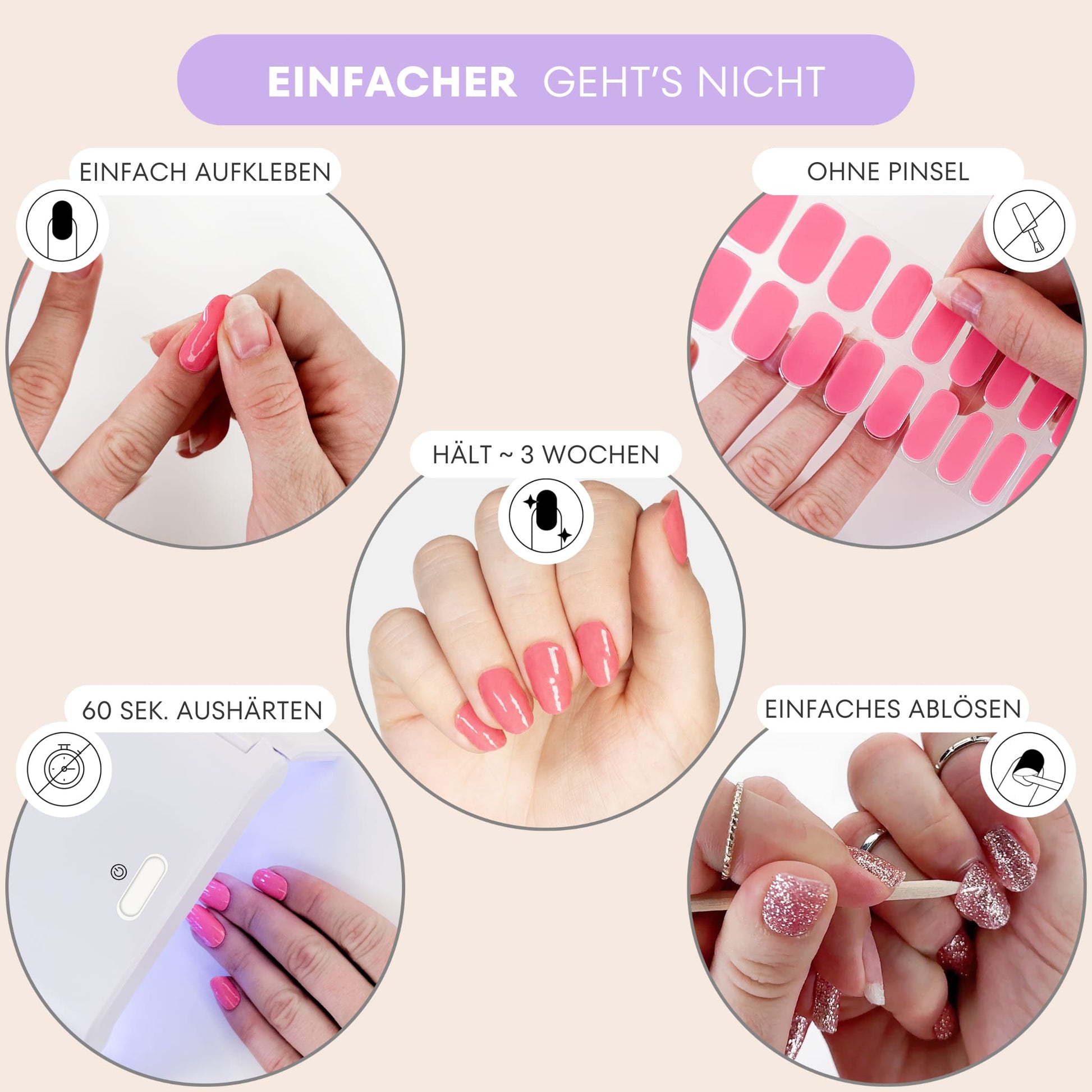 - Schnell & easy: Aufkleben, aushärten – und der Look sitzt.