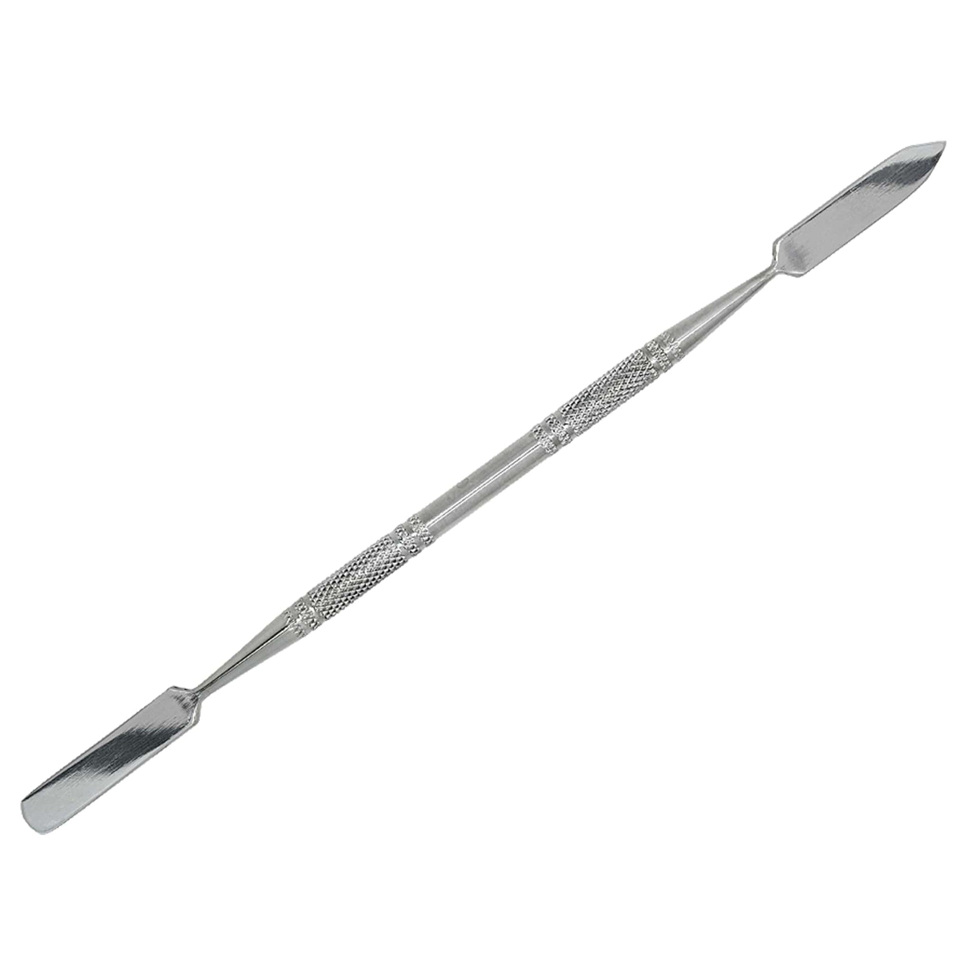 Der Gel Spatel ist ein Profiwerkzeug, welches seine Anwendung vielseitig findet. Er eignet sich dank seiner ideal doppelseitig verwendbaren Form für das Entfernen von Gel- und Acrylresten auf den Nägeln. Mit dem Spatel lassen sich auch die Nägel von unschönen Resten unterhalb des Nagels säubern oder aber die Nagelhaut zurückschieben. Dank der runden und spitzen Seite eignet sich der Spatel auch für das Aufnehmen von Strasssteinen oder aber zum Anrühren von Gel- und Acrylmassen, Cremes und Puder. Der Gel Spatel ist aus rostfreien Edelstahl gefertigt und lässt sich mit jedem Desinfektionsreiniger desinfizieren. In einem Ultraschallreiniger bekommt der Gel Spatel eine gründliche und schonende Sterilisation unterzogen. Die Gesamtlänge des Doppelinstruments beträgt 180mm.